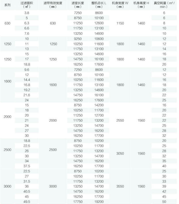 帶式真空壓濾機是以真空負壓為推動力實現(xiàn)固液分離的設備,在結構上,過濾區(qū)段沿水平長度方向布置,可以連續(xù)完成 過濾、洗滌、吸干、濾布沖洗等作業(yè)。帶式真空壓濾機具有自動化程度高、生產(chǎn)能力大、洗滌效果好、分離效果好、濾餅水分低、操作靈活,維修費用 低、節(jié)能環(huán)保等優(yōu)點。其自動化程度高,可實現(xiàn)連續(xù)生產(chǎn),提高了過濾效率;生產(chǎn)能力大,可滿足大規(guī)模生產(chǎn)的需求;分離效果好,能夠有效地將固體顆粒與液體分離;同時,由于其采用負壓原理工作,能耗較低,對環(huán)境無污染。